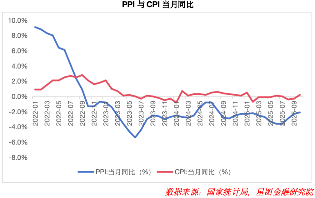 此外,在供给端,反内卷政策已初见成效。2025年1-9月,规模以上工业企业利润同比增长3.2%,其中9月单月同比增长21.6%,增速呈现逐月加快趋势;10月,CPI同比增长0.2%,实现增速由负转正,PPI同比降幅收窄至2.1%,环比增长0.1%,为年内首次转正。