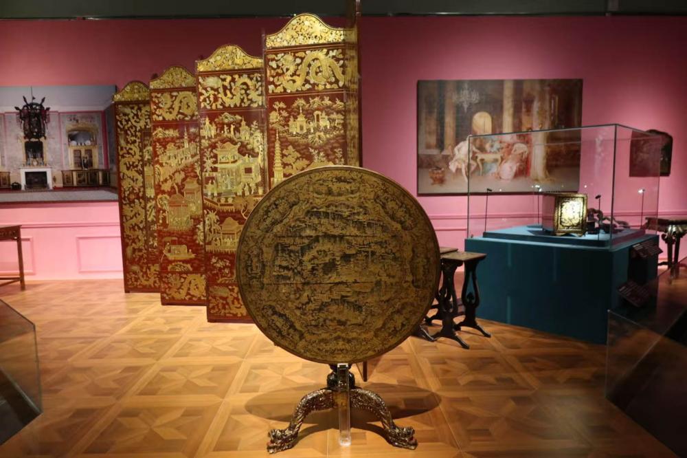 来到第三单元“时尚风标:外销漆器在西方”,一件件广作漆器远渡重洋抵达欧洲后,它们便从精美的东方外销品,变身为席卷西方上流社会的时尚品,参与到17至19世纪欧洲人的生活与审美之中。
