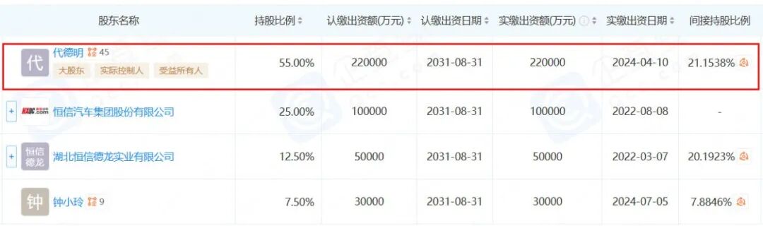 工商资料显示,代德明是楚能实控人,持股55%;恒信汽车是第二大股东。在其带领下,短短四年时间,楚能杀出重围,成为能源圈一匹“黑马”。