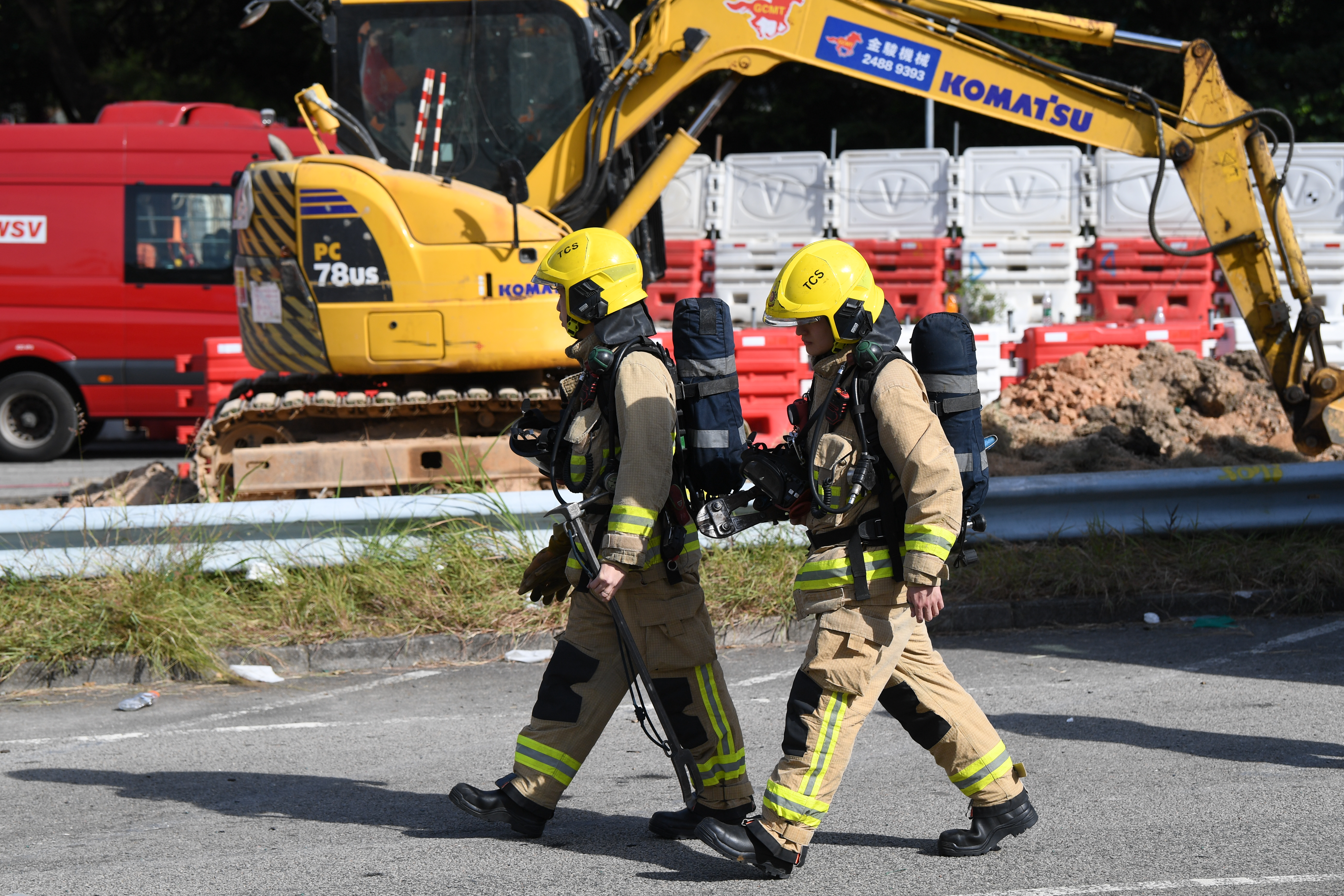 这是11月28日在香港大埔区宏福苑火灾救援现场拍摄的消防员。新华社记者 陈铎 摄