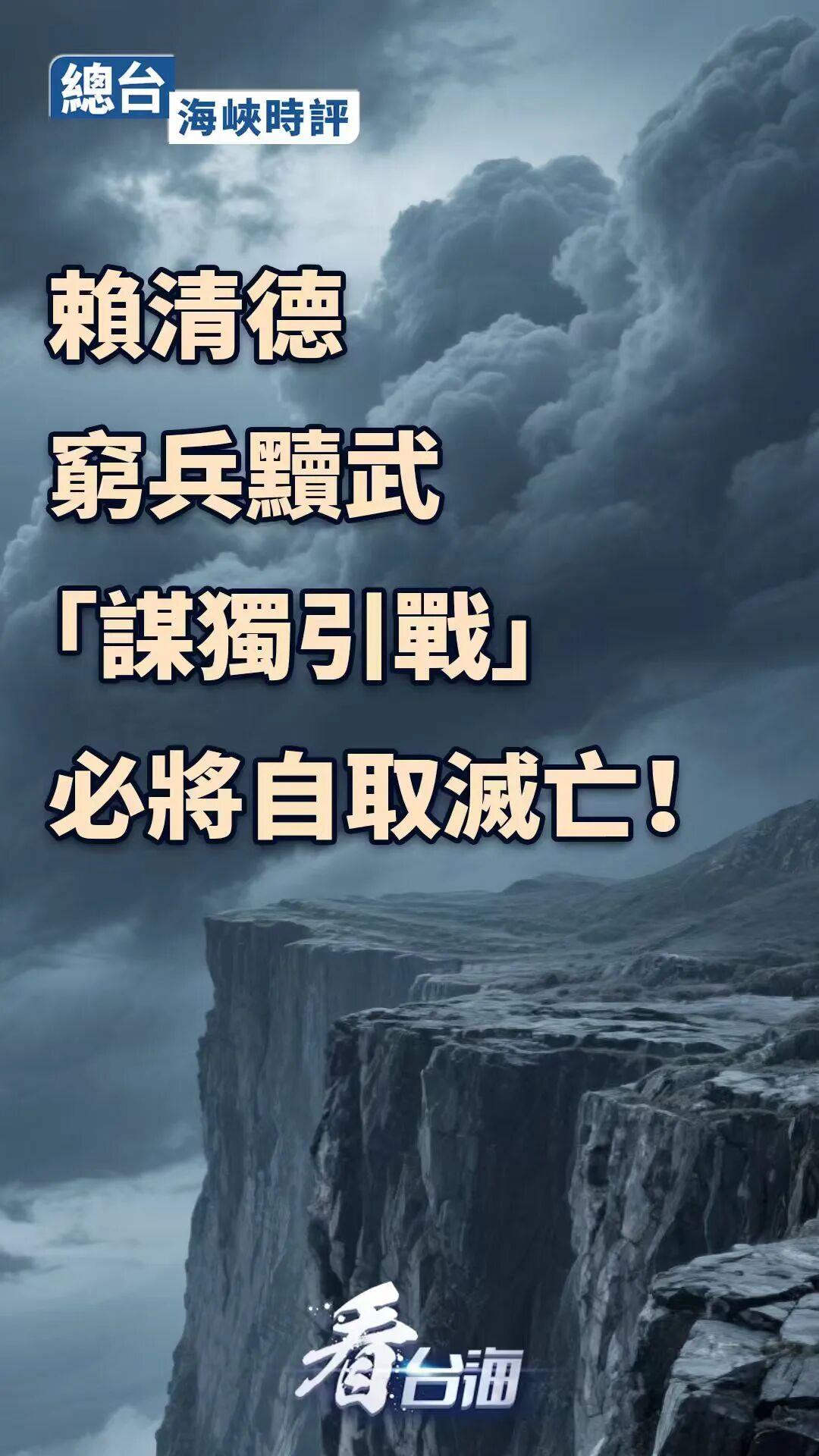 赖清德上台以来,顽固坚持“台独”分裂立场,极力挑动两岸对立,肆意鼓噪“反中抗中”,持续为其谋“独”造势。此次其再抛所谓“行动方案”,大肆渲染大陆“威胁”,欲砸万亿元新台币巨资向外部势力购买军火贴靠输诚,本质是妄图“以武谋独”“倚外谋独”。赖清德所言所行不是为其口口声声说的“安全”“民主”,更不是对台湾的“守护”,而是把岛内民生当“台独”燃料,把台湾推向兵凶战危的灾难深渊。这再度暴露出其“和平破坏者”“危机制造者”“战争煽动者”的凶恶面目。