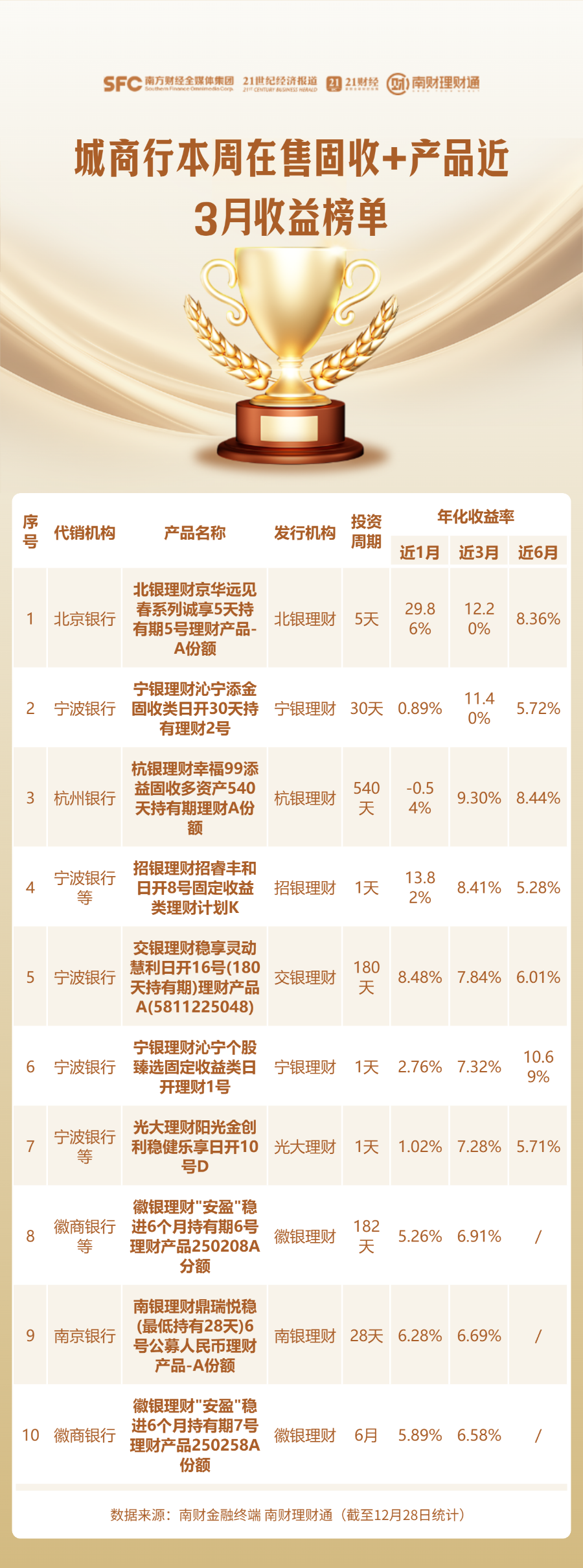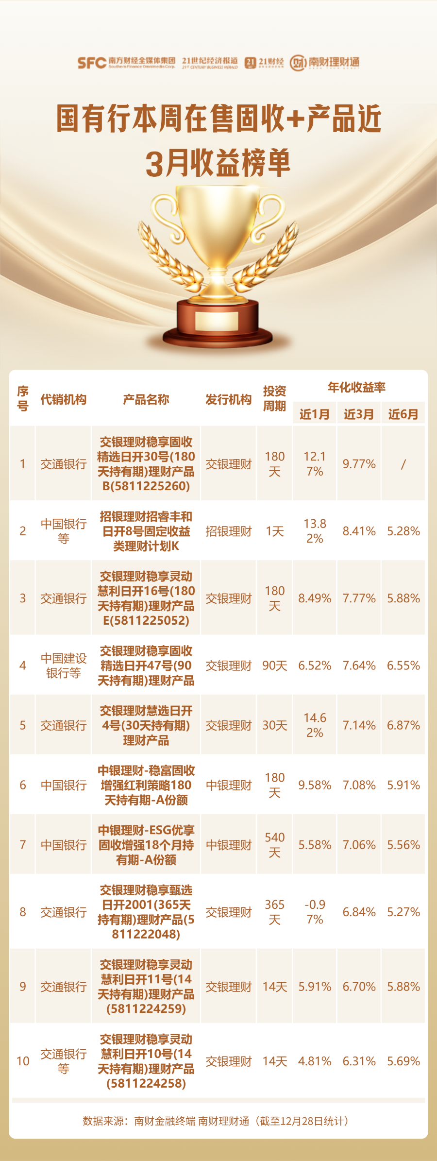 需要特别提醒的是: 本榜单对理财产品“在售”状态的判断基于其投资周期推算。但实际情况中,部分产品可能因额度售罄,或银行针对不同客户展示的产品清单存在差异而无法购买。因此,建议投资者以代销银行APP的实际展示为准。