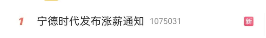 12月1日,“宁德时代发布涨薪通知”的词条迅速冲上微博热搜首位,引发大量网友关注。