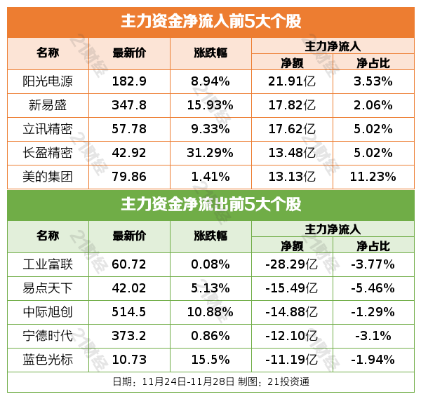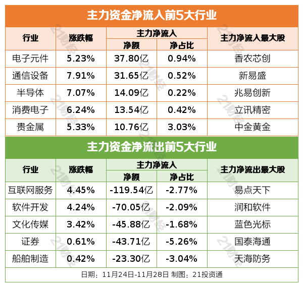 过去一周(11月24日—11月28日),A股三大指数集体上涨。截至11月28日收盘,上证指数报3888.60点,周涨1.40%;深成指报12984.08点,周涨3.56%;创业板指报3052.59点,周涨4.54%。