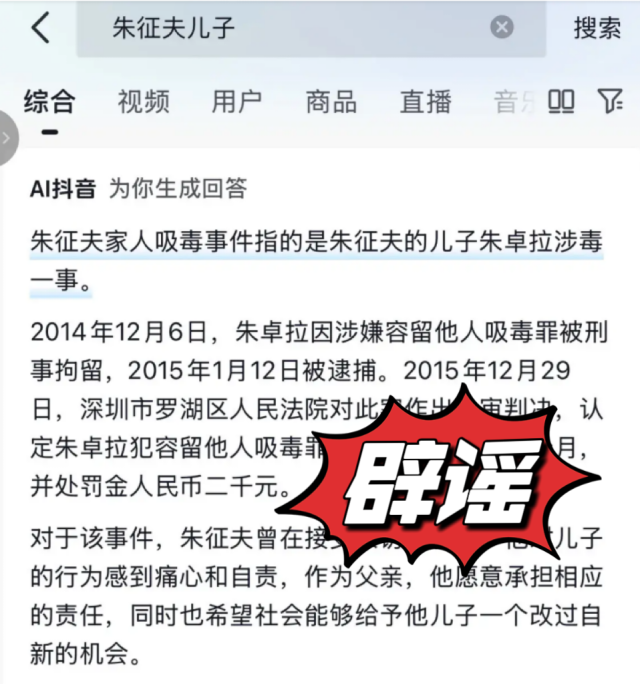 大量网传消息称:“武大法学教授朱征夫,其子朱卓拉因涉嫌容留他人吸毒罪被刑事拘留”,亦有传言称其吸毒的儿子名为“朱卓佳”,还有更夸张的传言称其全家涉毒,质疑其提轻罪前科记录封存制度建议是为家人考虑。