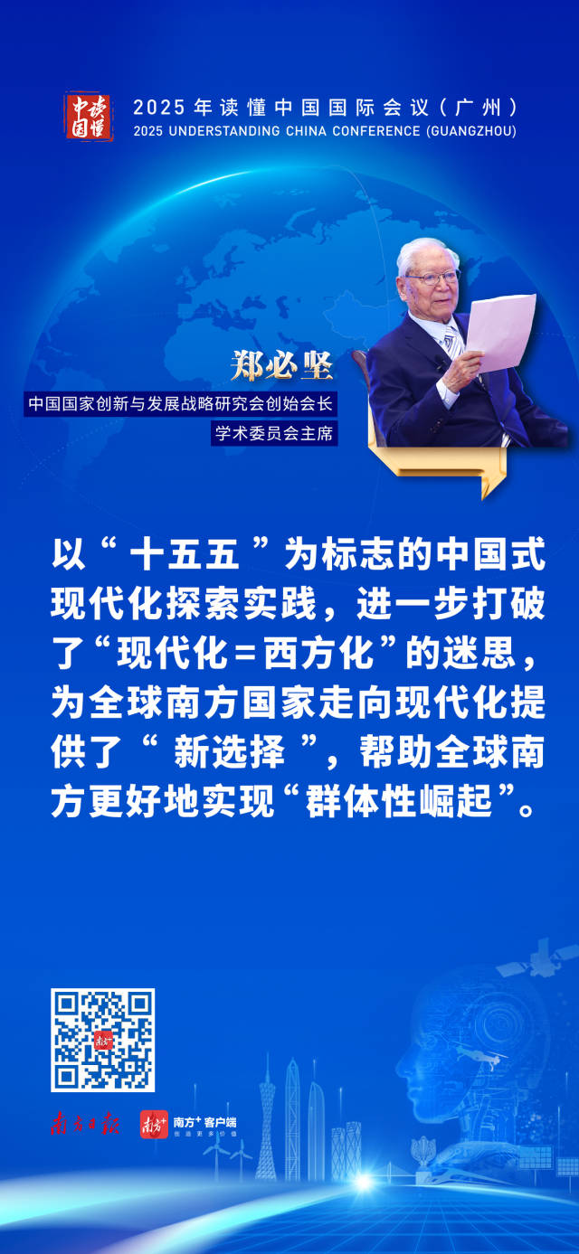 郑必坚认为,这样的以“十五五”为标志的中国式现代化探索实践,进一步打破了“现代化=西方化”的迷思,而为全球南方国家走向现代化提供了“新选择”,帮助全球南方更好地实现“群体性崛起”。