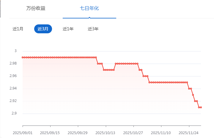 美元现金类产品(含不同份额)当前共计存续30只,主要配置现金及银行存款、美元债券等低风险资产。2025年9月至10月,美联储两次下调联邦基金目标利率,累计降息50bp,带动美元存款、债券等底层资产收益率同步走低。截至2025年11月27日,美元现金类产品收益全员跌落至“3字头”区间,近6月七日年化收益率均值为3.825%。