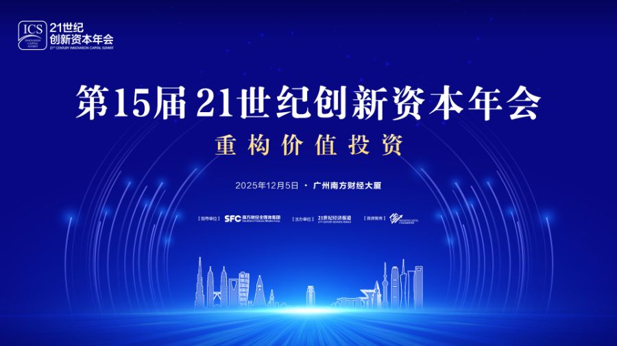 12月5日下午,由南方财经全媒体集团指导,21世纪经济报道主办的“第15届创新资本年会”将在广州的南方财经大厦举办。本届年会以“重构价值投资”为主题,邀您共赴这场思想盛宴。