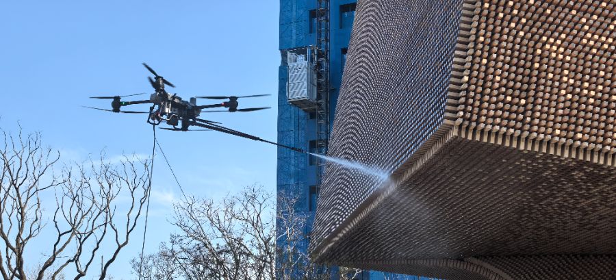 深圳星域无人机创始人刘振也向记者表示,有多家物业公司到展位前询问,望借其无人机高空外墙清洗技术,替代传统“蜘蛛人”作业,消除安全隐患。“按一天8小时算,单台无人机每天可清洗高层玻璃幕墙三五千平方米,对比单人效率提升约10倍。”刘振说。