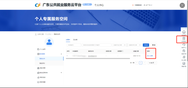 (2)点击右侧的进度查询,可查询本企业办理的所有事项记录,点击最右边的操作列可查看详情或修改信息。