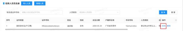 (5)导入后,招用人员花名册会显示导入成功的人员信息,可点击列表右方的“修改”,补充上传人员附件材料,或修改完善相关信息。