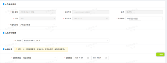(2)输入证件号码,系统自动带出人员基本信息。