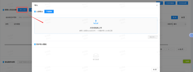 (1)点击“导入人员”,打开批量导入界面。