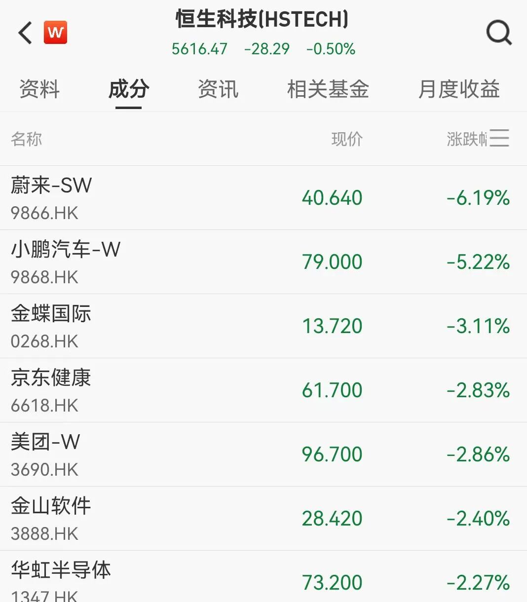港股方面,截至11:30,恒生指数飘红,恒生科技指数由涨转跌0.5%,科网股跳水,快手一度涨近5%,阿里巴巴涨近3%,截至发稿分别涨幅1%左右。新能源车概念股走弱,蔚来跌近6%,小鹏汽车跌超4%。