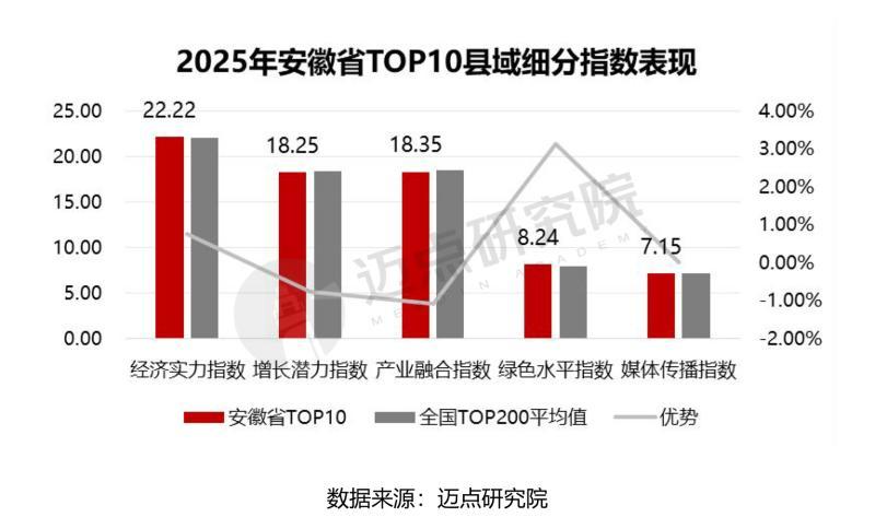 安徽省TOP10县域增长潜力指数为18.25,低于全国TOP200县域平均水平0.74%。数字化应用程度较低,影响了项目的持续吸引力。新兴业态培育相对缓慢,难以有效吸引年轻消费群体。