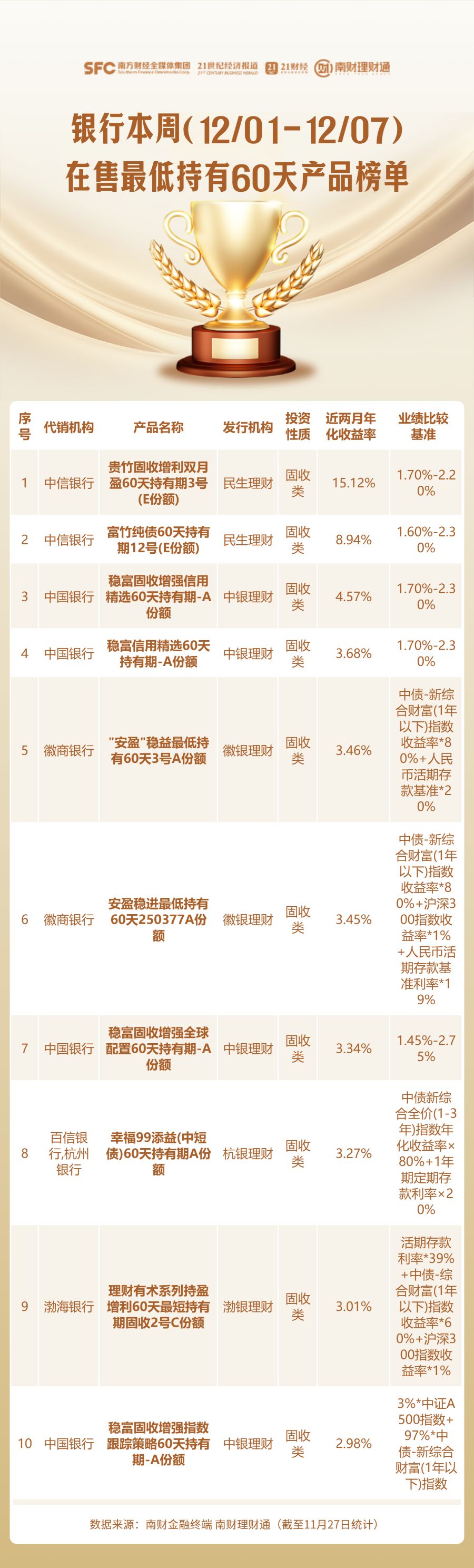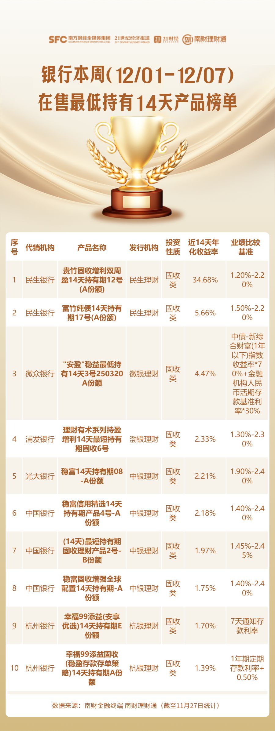 需要特别提醒的是: 本榜单对理财产品“在售”状态的判断基于其投资周期推算。但实际情况中,部分产品可能因额度售罄,或银行针对不同客户展示的产品清单存在差异而无法购买。因此,建议投资者以代销银行APP的实际展示为准。