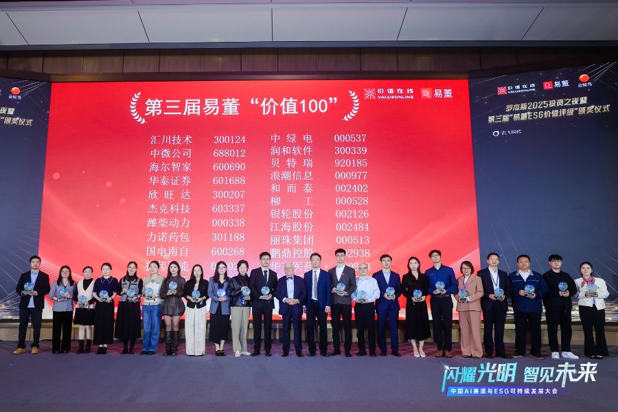 本次颁奖仪式共揭晓六大奖项,包括第三届易董“价值100”榜单、2025年度上市公司最佳ESG实践奖、2025年度上市公司ESG价值传递奖、2025年度上市公司卓越投关建设奖、2025年度董办数字化创新最佳实践奖及2025年度AI前沿创新奖。汇川技术、中微公司、海尔智家等百家企业入选“价值100”榜单,英诺赛科、湖北宜化、明泰铝业等众多企业分别斩获各类单项奖项。吉姆・罗杰斯、苏梅、陈前、李大霄等嘉宾先后为获奖企业颁奖,见证企业在ESG治理、数字化转型、AI创新等领域的卓越成就。
