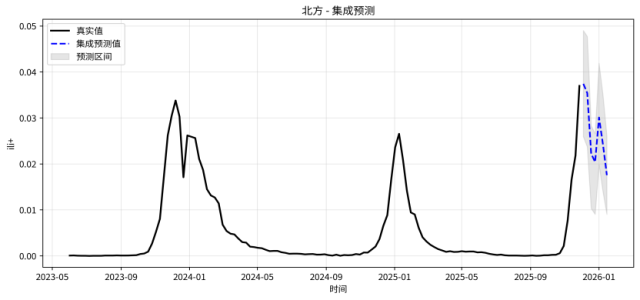 研究显示,北方地区预计将在12月中旬左右进入阶段性高峰,之后进入短期下降阶段,随后将在2026年1月初出现小范围反弹,并逐步下降。