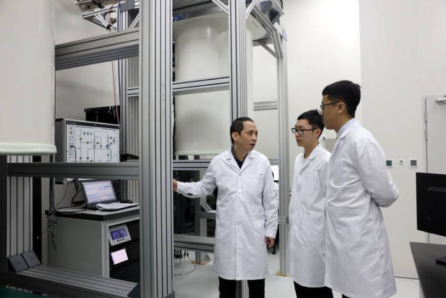 2025年3月3日,中国科学技术大学教授、“祖冲之号”量子计算总师朱晓波(左一)与学生讨论实验结果。新华社发(代蕊摄)
