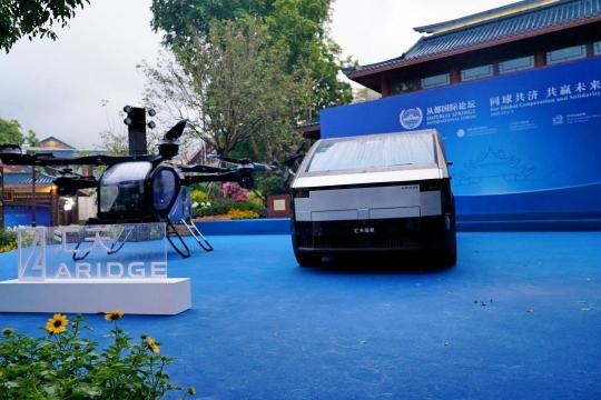 现场,一款造型科幻、名为“陆地航母”的飞行汽车引发了与会各国嘉宾的浓厚兴趣。