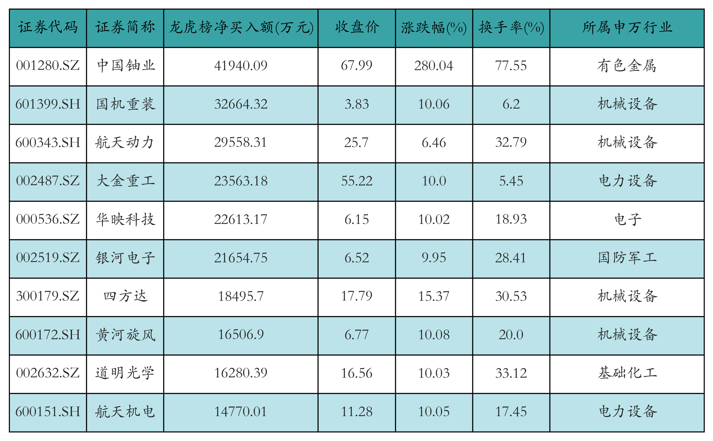 昨日龙虎榜营业部净买入额前10详情见下表: