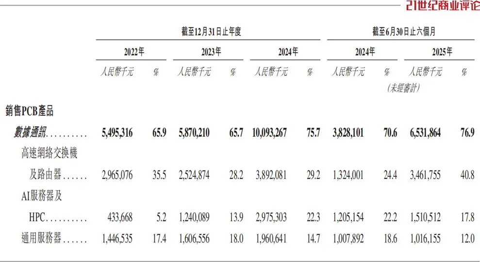据半年报披露,其AI服务器及HPC(高性能计算)相关PCB产品,收入占比在两成左右。