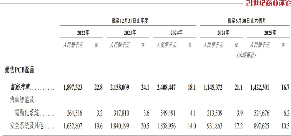 招股书亮出一组数字,在全球市场,数据中心领域,其PCB收入占据10.3%份额;22层以上高端PCB产品,占比达到25.3%;L2+自动驾驶域控制器高阶HDI PCB,获得15.2%份额。