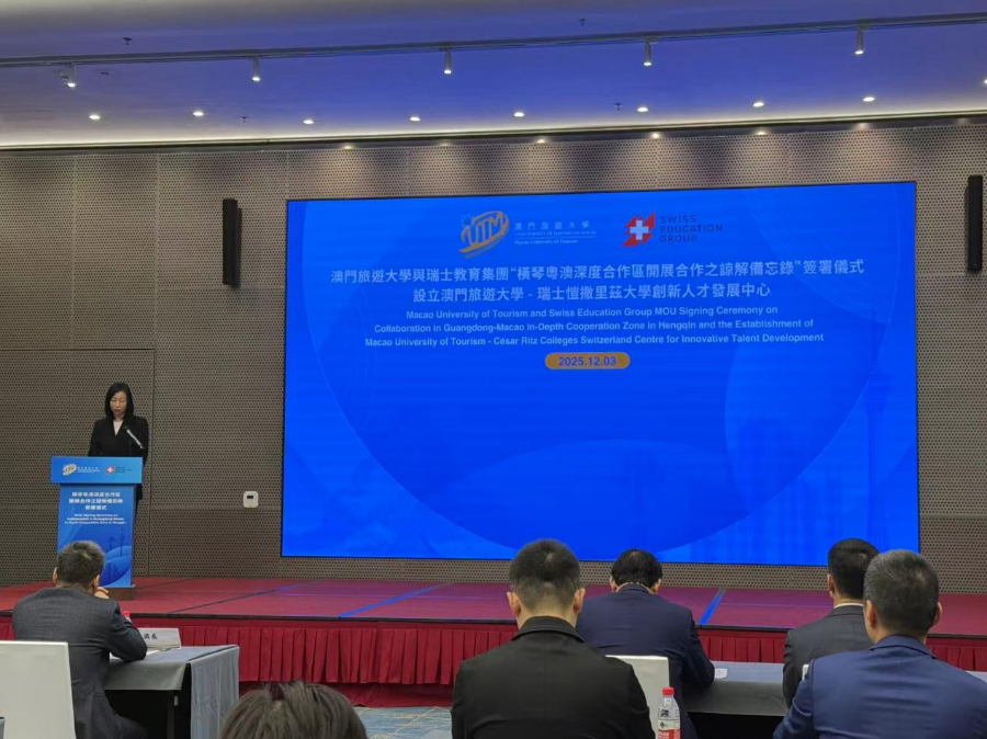 澳门旅游大学校长黄竹君透露,下学年,澳门旅游大学将在横琴粤澳深度合作区开展以研究生教育为主的过渡期教学,并积极筹备新校区的建设、逐步扩大办学规模。此次合作标志着澳琴教育协同发展迈出实质性一步,在横琴为学生提供国际化教育与培训服务,让澳门的优质教育资源与瑞士的顶尖酒店管理经验,在横琴这片创新沃土上实现“跨境生长”。