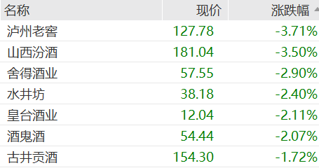 下跌方面,白酒指数盘中下挫,泸州老窖、山西汾酒下跌超3%。