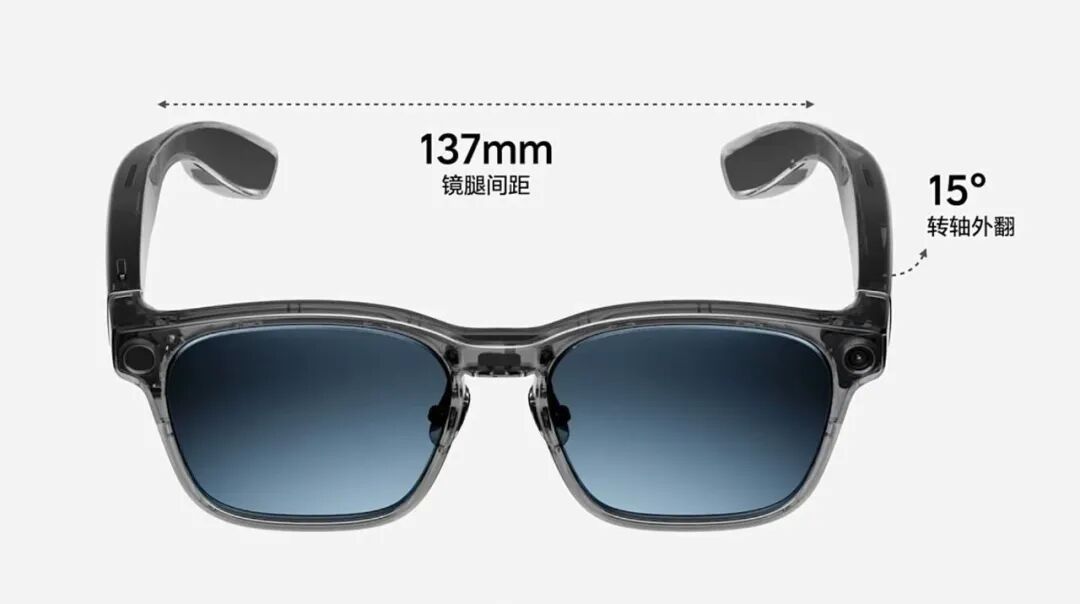 在外观设计上,镜框外形“上圆下方”,环抱式设计,镜腿间距137mm,全系半透明质感,采用亮光、哑光等材质,支持经典黑、科技灰、橄榄绿等颜色。