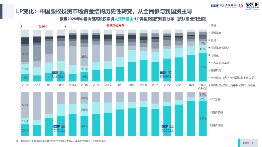 这意味着,中国股权投资市场资金结构已经发生历史性转变,从全民参与变成了由国资主导。