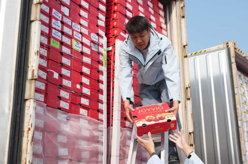 智利车厘子在龙穴开柜销售,龙穴街道供图