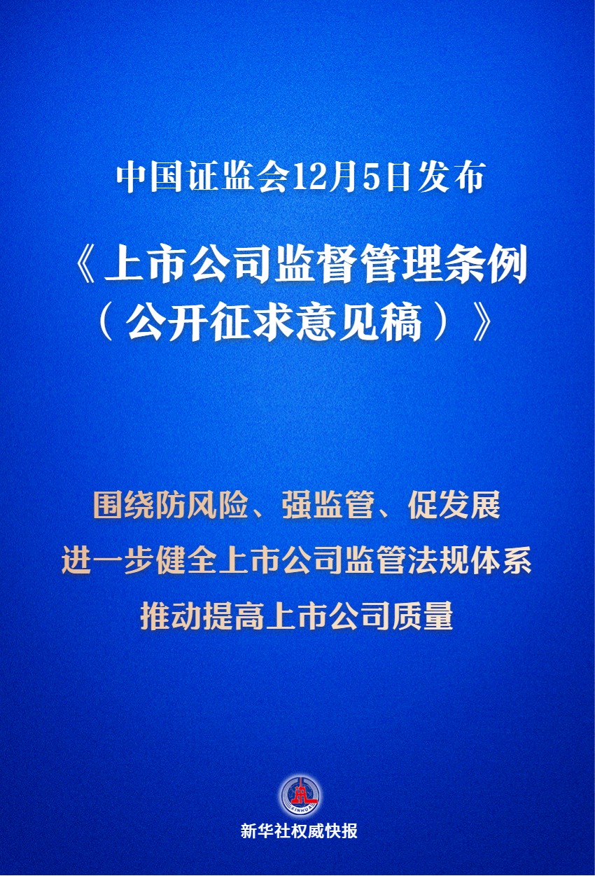 12月5日,中国证监会发布《上市公司监督管理条例(公开征求意见稿)》,这意味着我国将迎来首部专门的上市公司监管行政法规。