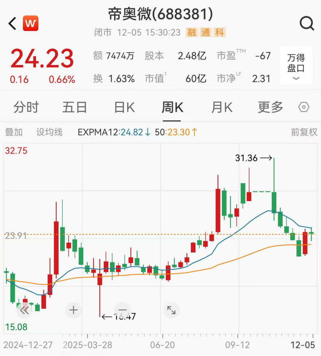 截至12月5日收盘,帝奥微报24.23元/股,总市值60亿元。