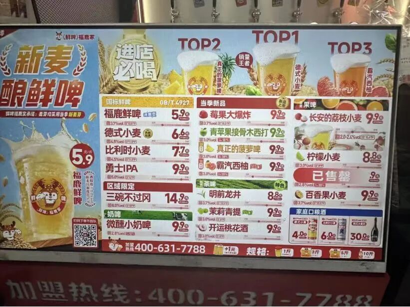 △图片来源:红餐网摄此外,品控压力同样也是福鹿家不容忽视的问题。酒精饮品与茶饮、咖啡不同,消费者对其品质的敏感度更高,一旦出现口感波动或食品安全问题,很容易引发口碑问题。“鲜啤对原料新鲜度、酿造工艺要求高,快速扩张下,如何确保各地门店鲜啤品质稳定,避免因品控问题损害品牌声誉,也是蜜雪亟待解决的问题。”詹军豪表示。