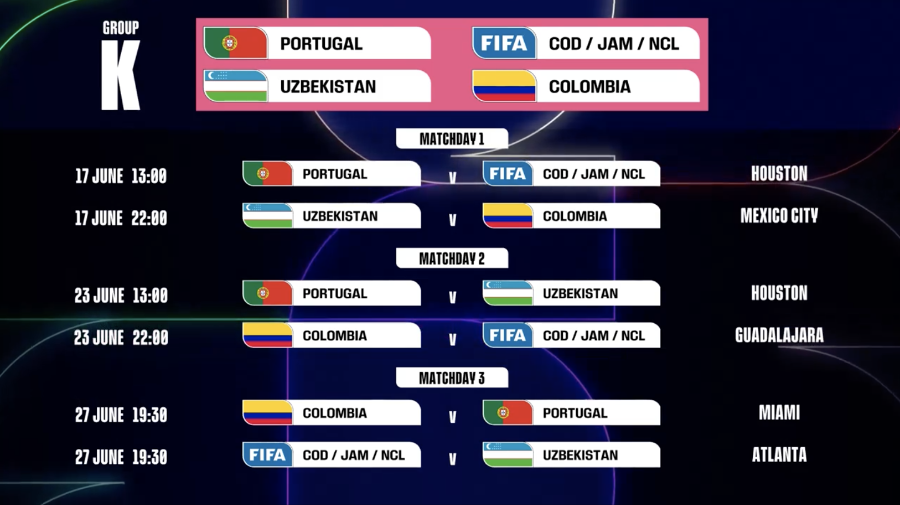 第1轮 乌兹别克斯坦vs哥伦比亚:6月17日,22:00,墨西哥城