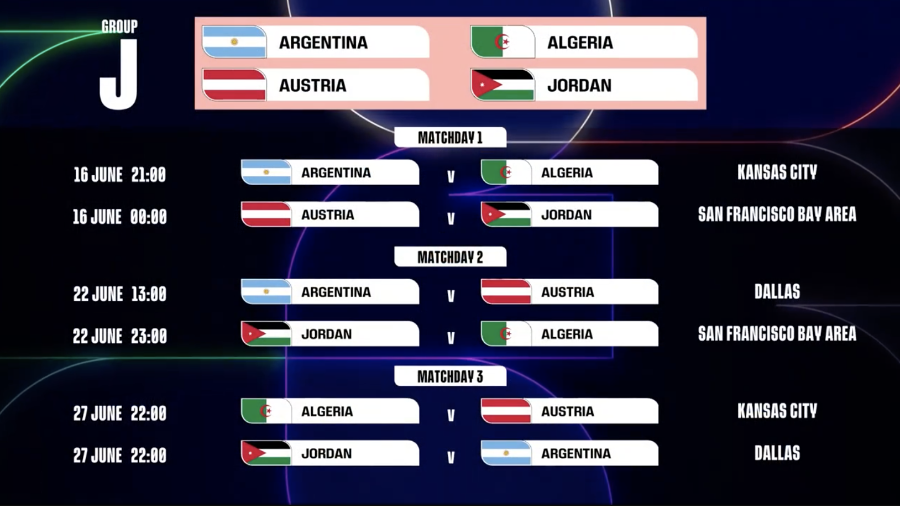 第3轮 约旦vs阿根廷:6月27日,22:00,达拉斯