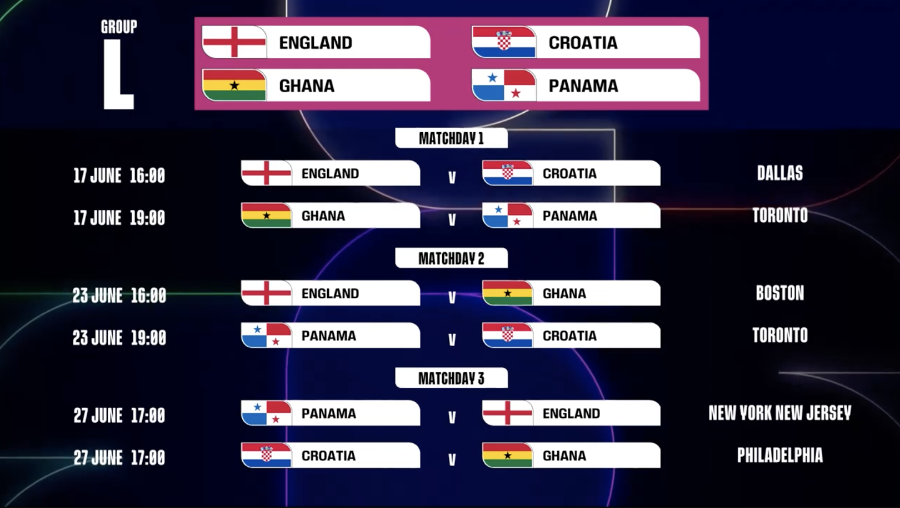 第1轮 英格兰vs克罗地亚:6月17日,16:00,达拉斯