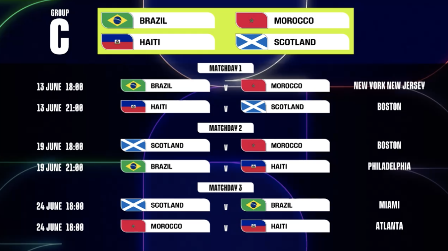 第1轮 巴西vs摩洛哥:6月13日,18:00,纽约/新泽西