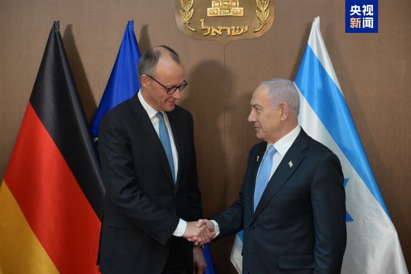 △德国总理默茨(左)和以色列总理内塔尼亚胡(右)