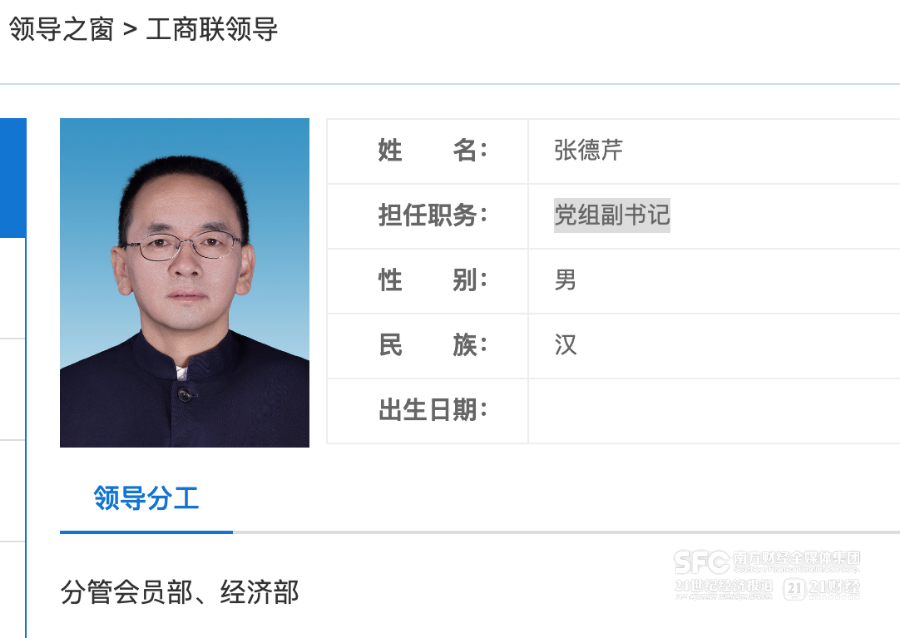 12月9日下午,21世纪经济报道记者注意到,贵州省工商联合会官网领导一览更新,张德芹担任党组副书记,分管会员部、经济部。