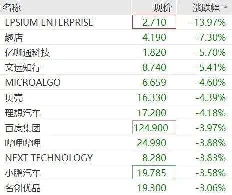 热门中概股普遍下跌,纳斯达克中国金龙指数一度跌2%。趣店跌超7%,亿咖通科技、文远知行跌超5%,贝壳、理想汽车、百度、哔哩哔哩跌幅在4%上下,小鹏汽车跌超3%,阿里、京东跌超1%。