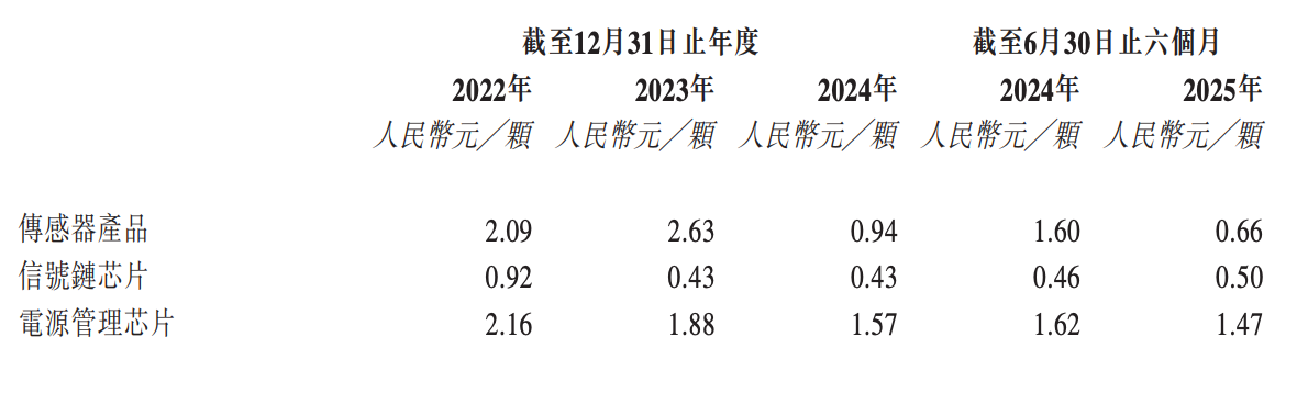 面对激烈的价格战,为坚守市场份额,纳芯微相应调整了产品定价。自2022年至2024年,纳芯微的传感器产品的平均售价由每颗2.09元减少至0.94元,信号链芯片的平均售价由每颗0.92元减少至0.43元,电源管理芯片的平均售价由每颗2.16元减少至1.57元。