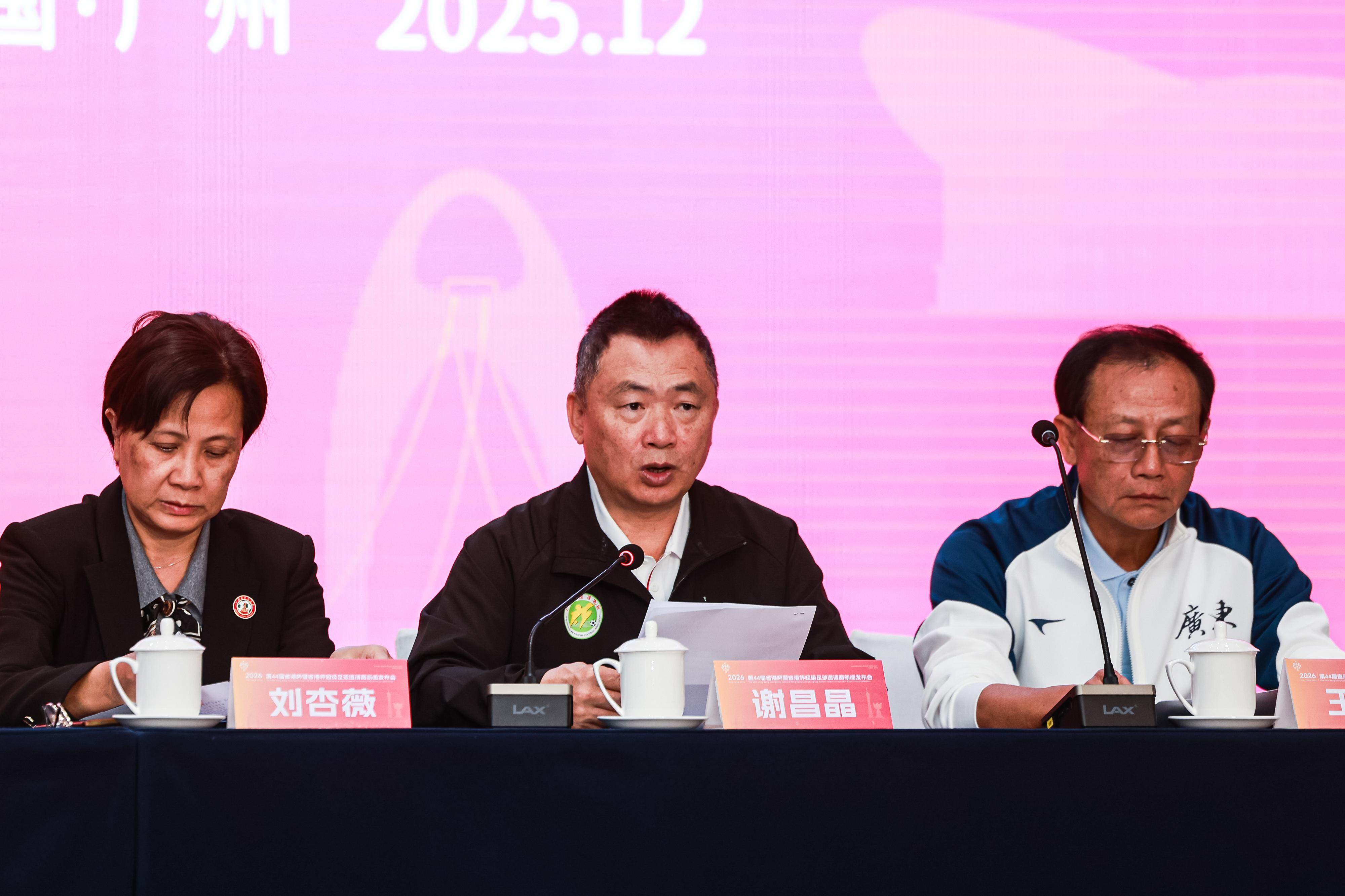 据广东省足球协会主席谢昌晶介绍,为扩大省港杯影响力,推动大湾区社会足球发展和繁荣,2025年12月27日至2026年1月1日将在佛山三水和广州举办2026年省港杯超级邀请赛。该项赛事将邀请国内及港澳等6支队伍参加,包括广东省超冠军队、佛山“西甲”冠军广东凤铝队、村超全国冠军肇庆高要金利诚峻队、新疆千佛洞代表队 、香港地区体育会联会队、澳门澳科精英队。