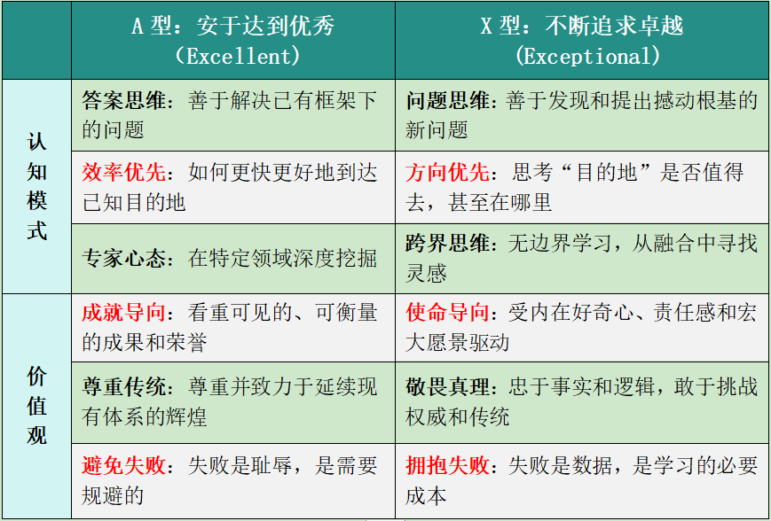 最为重要的是,“A型人才”和“X型人才”的驱动力有明显不同。前者高度外生,源于对外部评价与激励的响应;后者强烈内生,源于好奇心、热爱、使命感与创造激情。