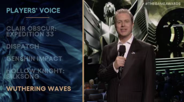 北京时间12月12日,被誉为“游戏界奥斯卡”的TGA2025(The Game Awards)颁奖典礼正式揭晓年度获奖名单。来自广州天河区的库洛游戏研发并发行的开放世界动作游戏《鸣潮》,成功斩获“玩家之声”(Players' Voice)奖项。