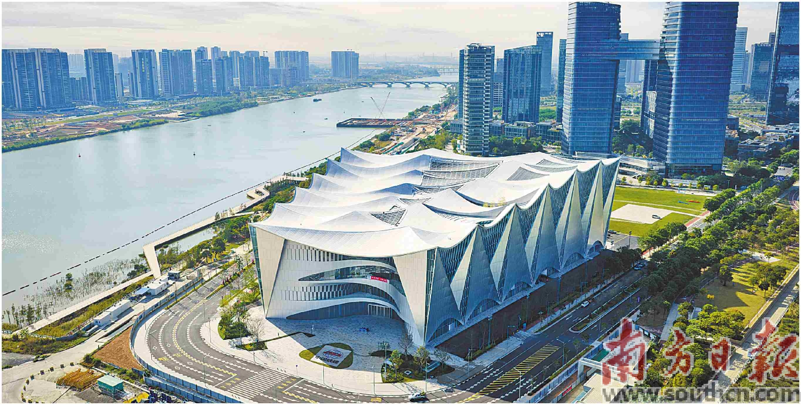12月12日,位于广州南沙明珠湾区灵山岛尖的大湾区科学会堂全面亮相。其建筑面积约9.26万平方米,集学术中心、科技馆、配套功能于一体,为大湾区再添科学交流新地标。大湾区科学会堂以“千帆竞渡,科技远航”为设计理念,拥有全国最大波浪形连续焊接不锈钢屋面。屋面“金属海浪”由26片凹形曲面拼接而成,最大高差达21米。