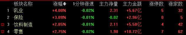消费股逆势走强。乳业、白酒、零售、三胎等方向领涨市场,皇台酒业、欢乐家、皇氏集团等多股涨停。