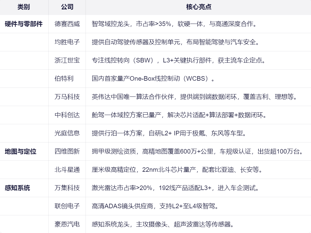 对供应链而言,激光雷达、算力芯片、智能底盘、高精度地图与定位等核心部件供应商,有望迎来量产订单。