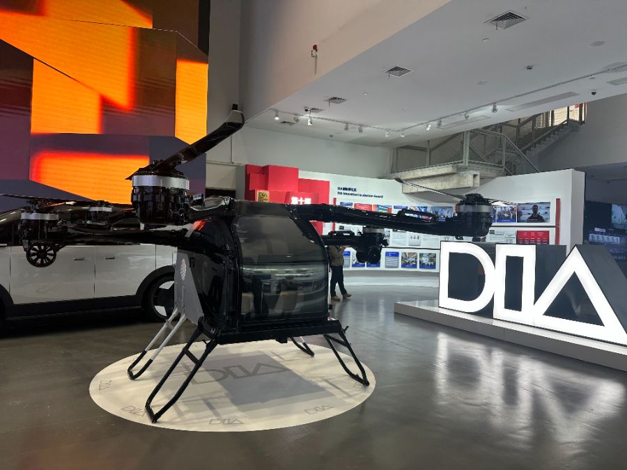 一进入展厅,记者就看到一款十分吸引眼球的科技产品——小鹏汇天的“陆地航母”,这是一款创新式的分体式飞行汽车,被认为是全球首款面向个人用户量产交付的飞行汽车产品。此前,第十五届中国国际航空航天博览会开幕首日上,小鹏汇天分体式飞行汽车“陆地航母”全球首次公开飞行。这款产品获得本届DIA产业装备组金奖。